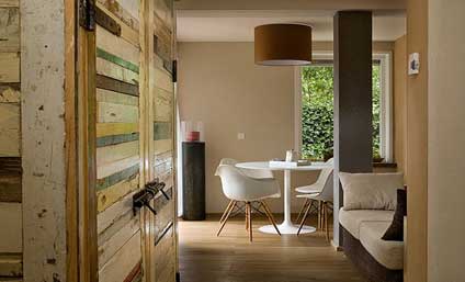 - Woonkamer met kitchenette en tweepersoons slaapbank.